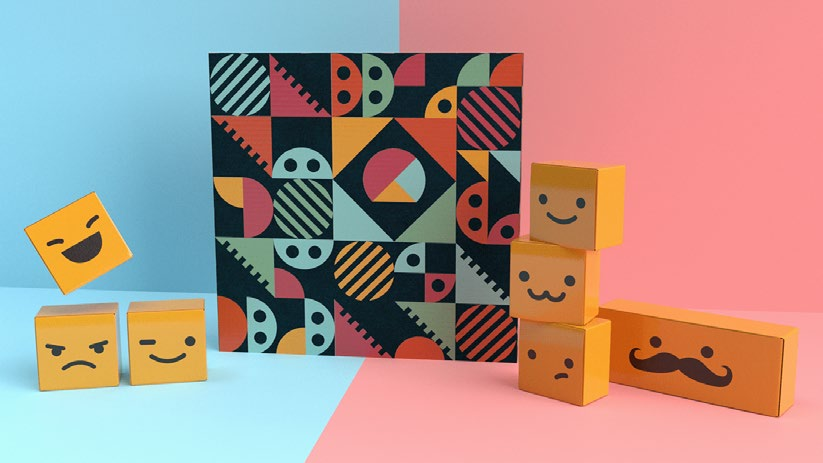 以几何图形为基础,丰富的色彩进行设计