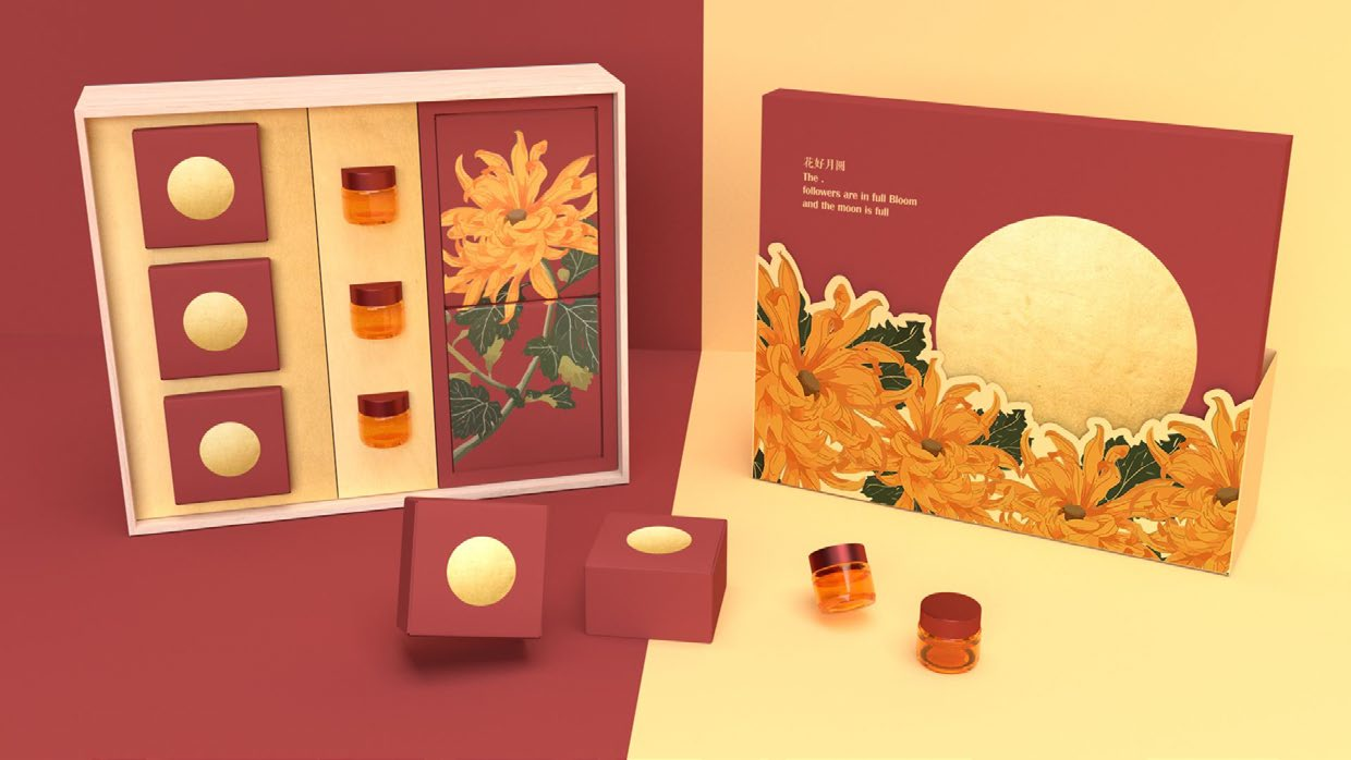 主题“花好月圆”,以菊花、圆月